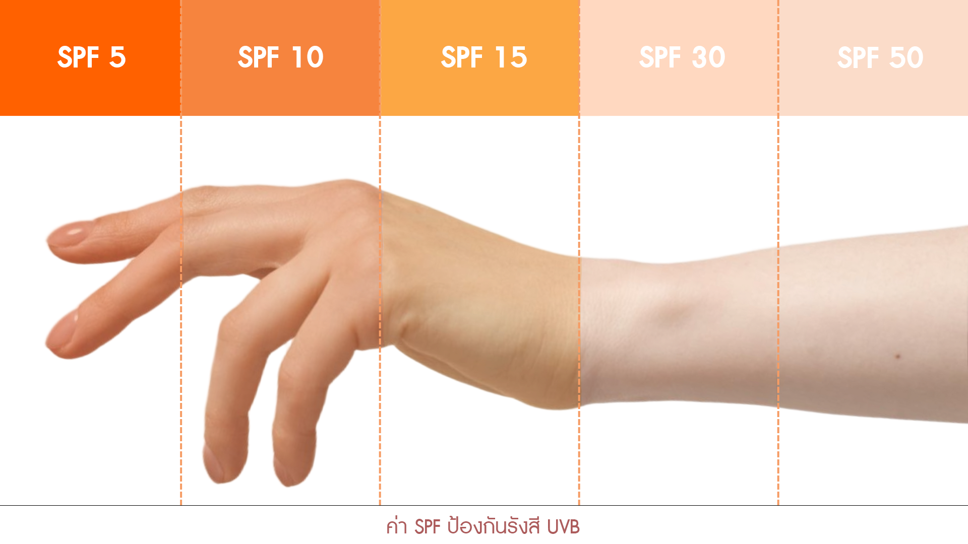 - SPF 15 ปกป้องผิวจากรังสี UVB ได้ประมาณ 93%